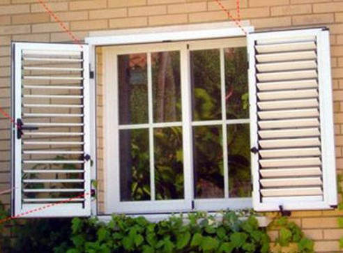 ![]() | Contraventana Exterior (Mallorquina) Las contraventanas exteriores aportan claros beneficios a su vivienda: protegen las ventanas frente a las duras condiciones climatológicas y no se ven afectadas por la humedad, la corrosión o los hongos. Pueden combinarse las lamas fijas de varias maneras, de forma que dejen ventilación o no y también pueden orientarse. Permite la fabricación de contraventanas con lamas fíjas y móviles de formas redondeadas. |